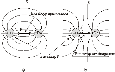 Волновой обмен материей-пространством-покоем-движением в классической физике принято изображать с помощью "силовых линий", или "линий напряженности" и т.д. (рис.3). Эти термины неверны, ибо нет в природе сил и соответствующих им параметров напряженности, но есть параметры обмена: