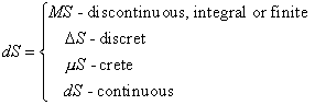 The first differential, MS, describes finite variations, the second, D S, describes minor variations, the third, m S, describes minute variations, the fourth dS describes variable variations, assuming any infinitesimal values, including zero at the corresponding point of a judgement. Of course, such partition of differentials on the four types has relative character.