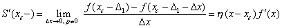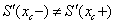 The values of the derivatives on the left and on the right of xc are not equal:
