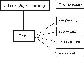 Basis and superstructure, as the morphological level of a language, have the proper superstructure, the syntactical level (Fig. 1.4). The syntactical level, as the complex superstructure, has own basis: a set of subjective contents, subiectum (subject); a set of objective contents, objectum (object); a set of form, attributum (attribute); a set of motion and state, praedicatum (predicate).