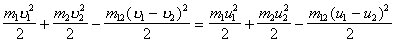 Первые два слагаемых слева и справа от знака равенства - абсолютные кинетические энергии, третьи отрицательные слагаемые - относительные энергии.