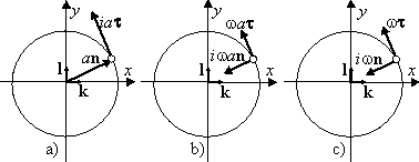 Производная от радиус-вектора определяет кинетико-потенциальную скорость движения по окружности (рис.2.3b):